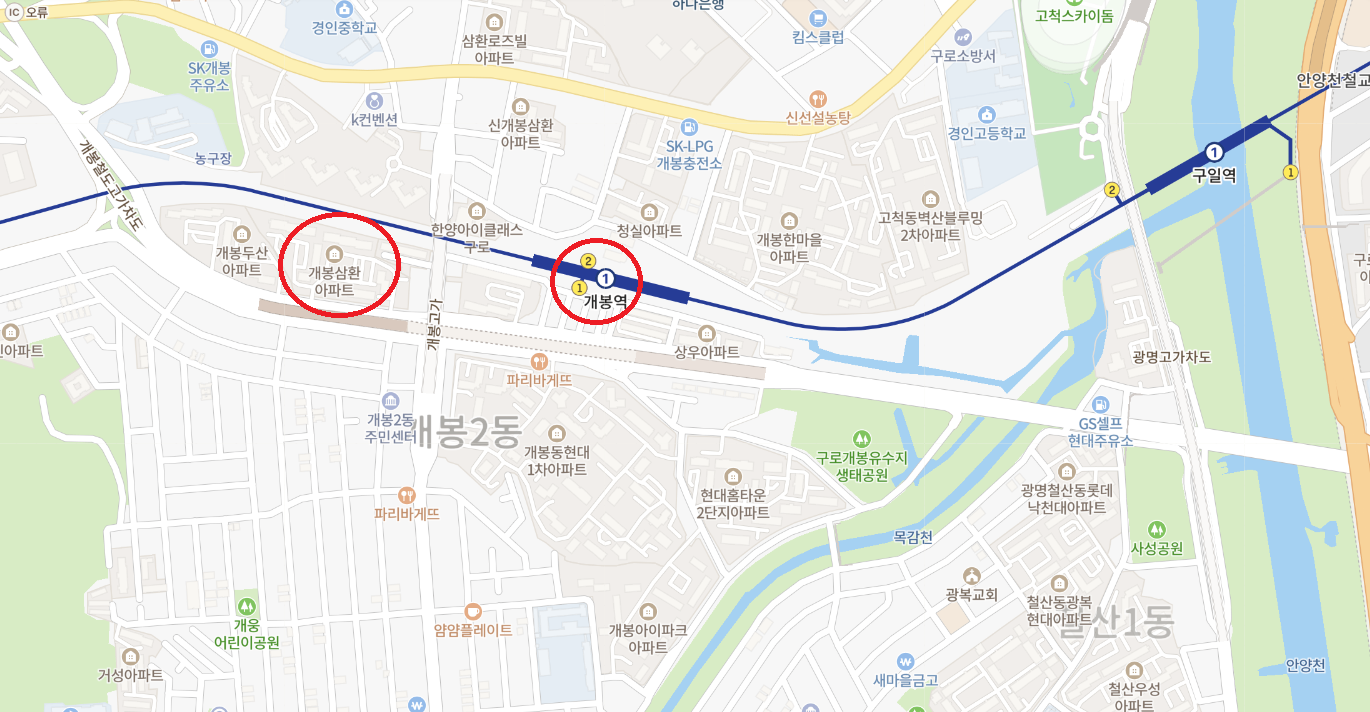 개봉 삼환아파트는 개봉역과 도보 10분 정도 거리에 위치하고 있습니다.
