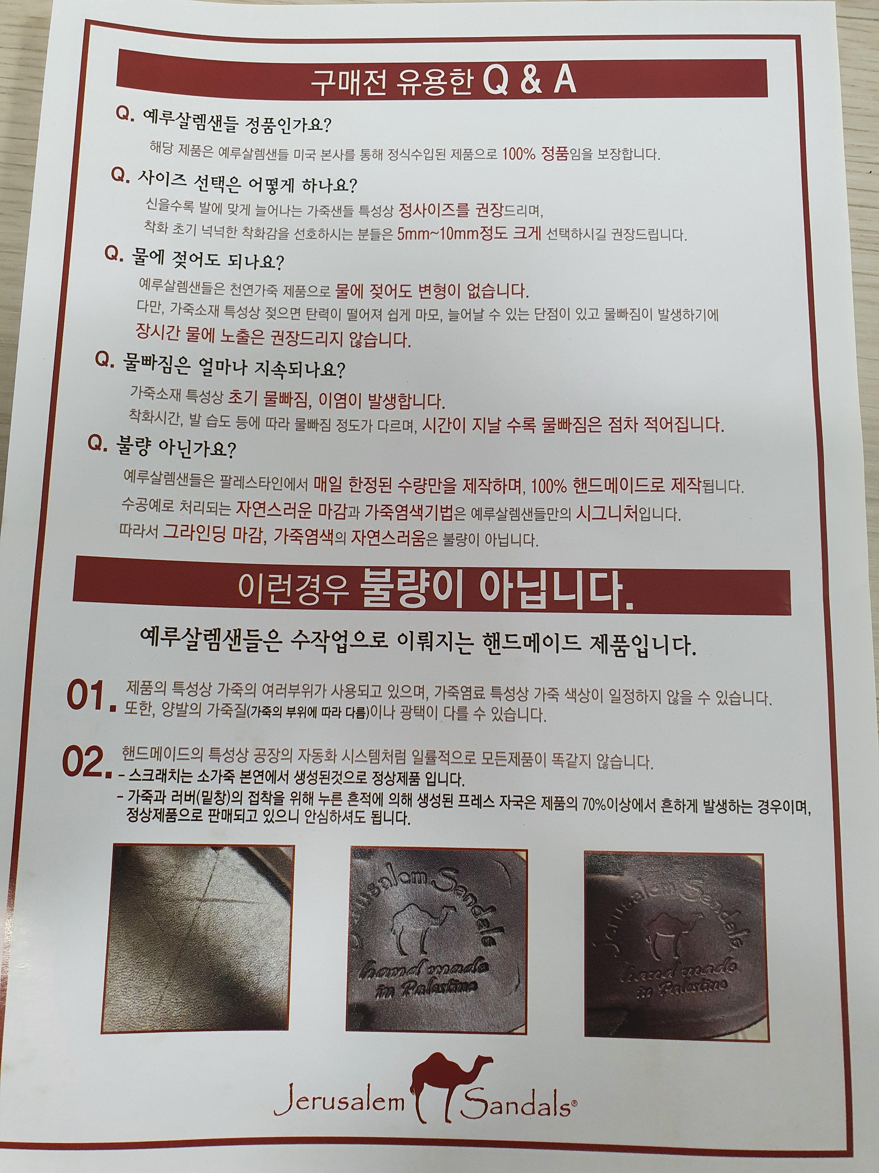 또한, 예루살렘 샌들은 가죽 소재 특성상 초기 물 빠짐, 이염이 발생한다고 합니다.