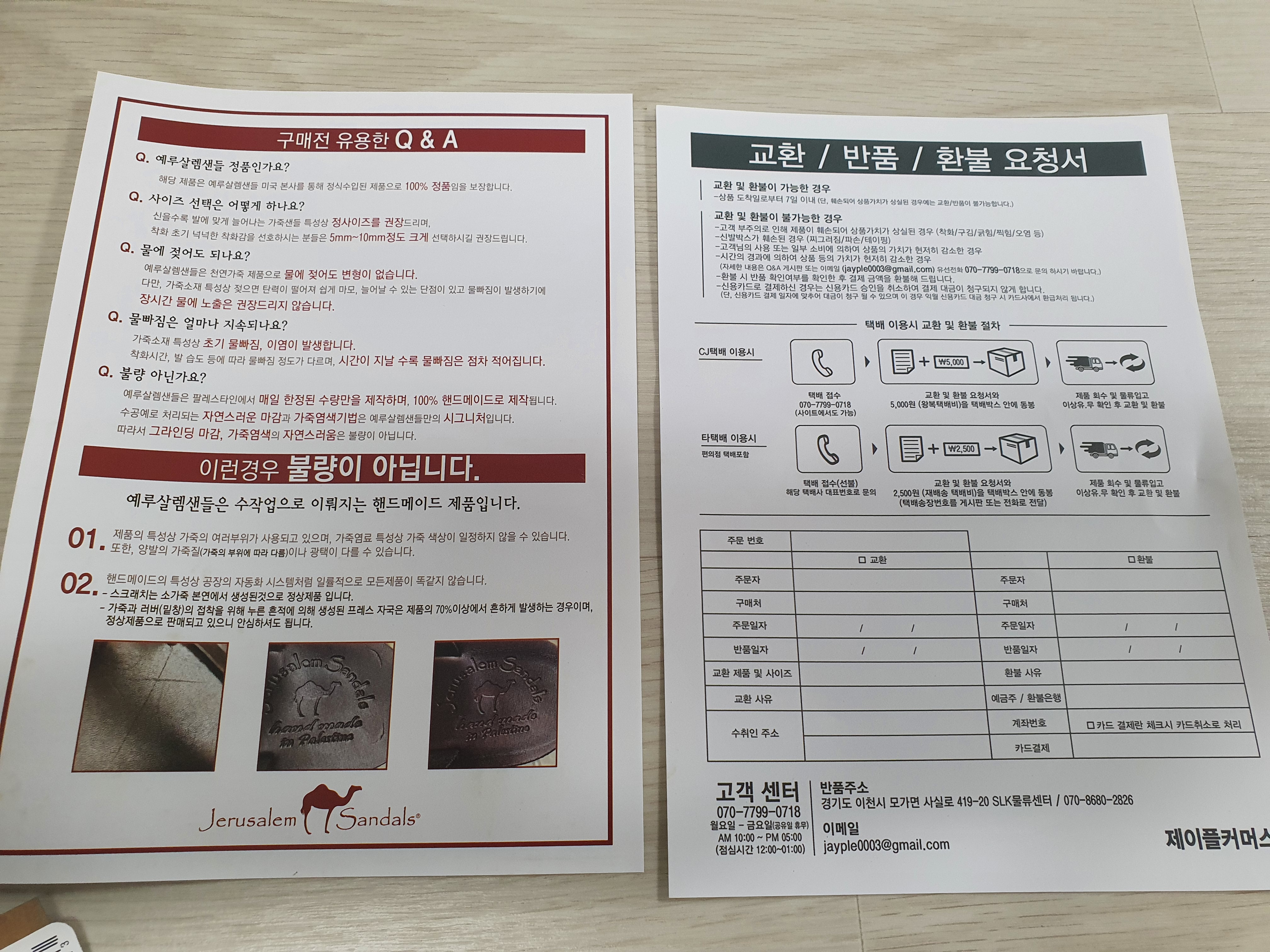 다시 한번 정리하자면, 제가 주문한 예루살렘 샌들은