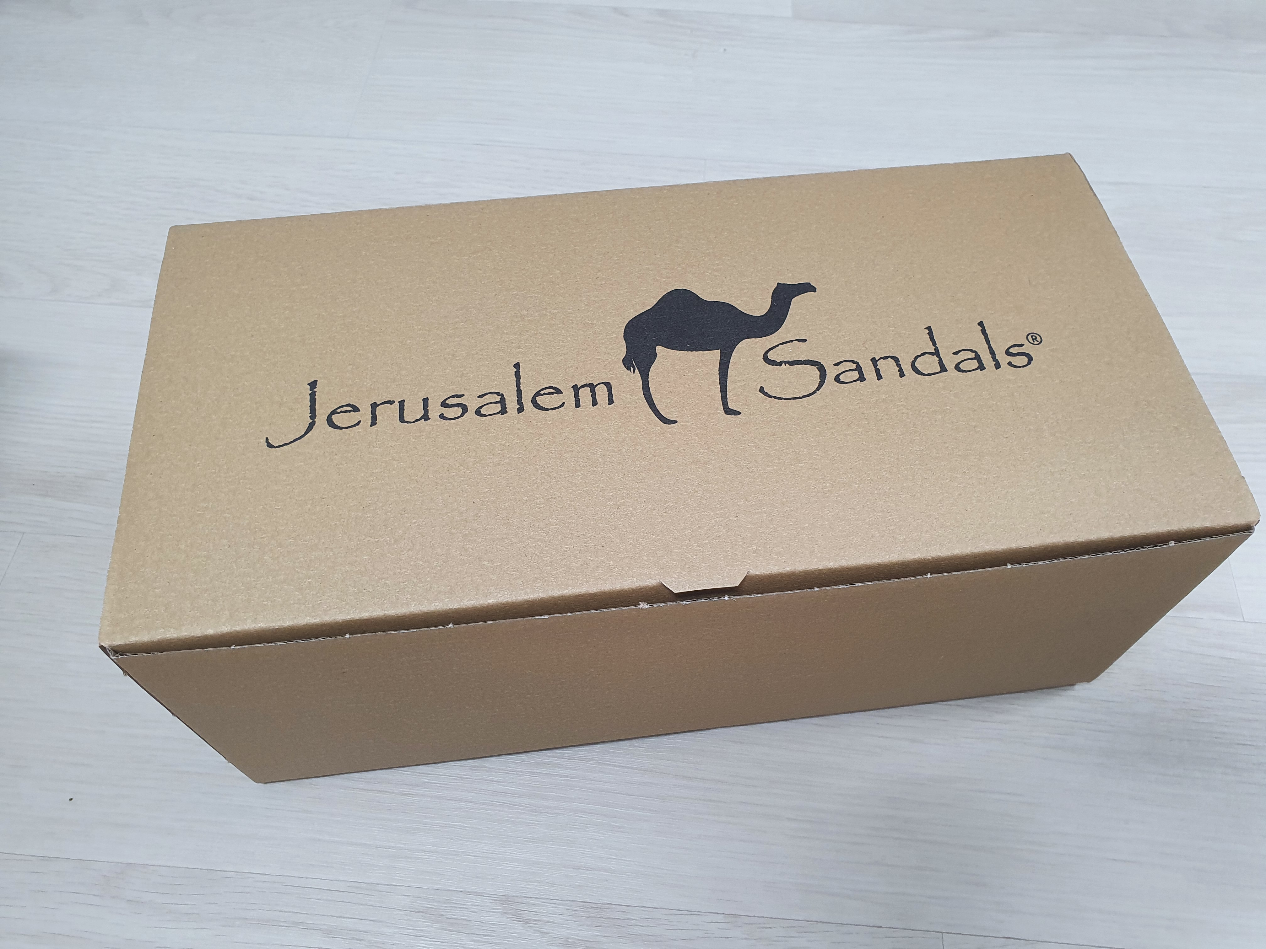 예루살렘 샌들 [ 예루살렘 더 굿 셰퍼드 ] 을 구매하면 이렇게 낙타 로고가 있는 박스에 담겨 옵니다.