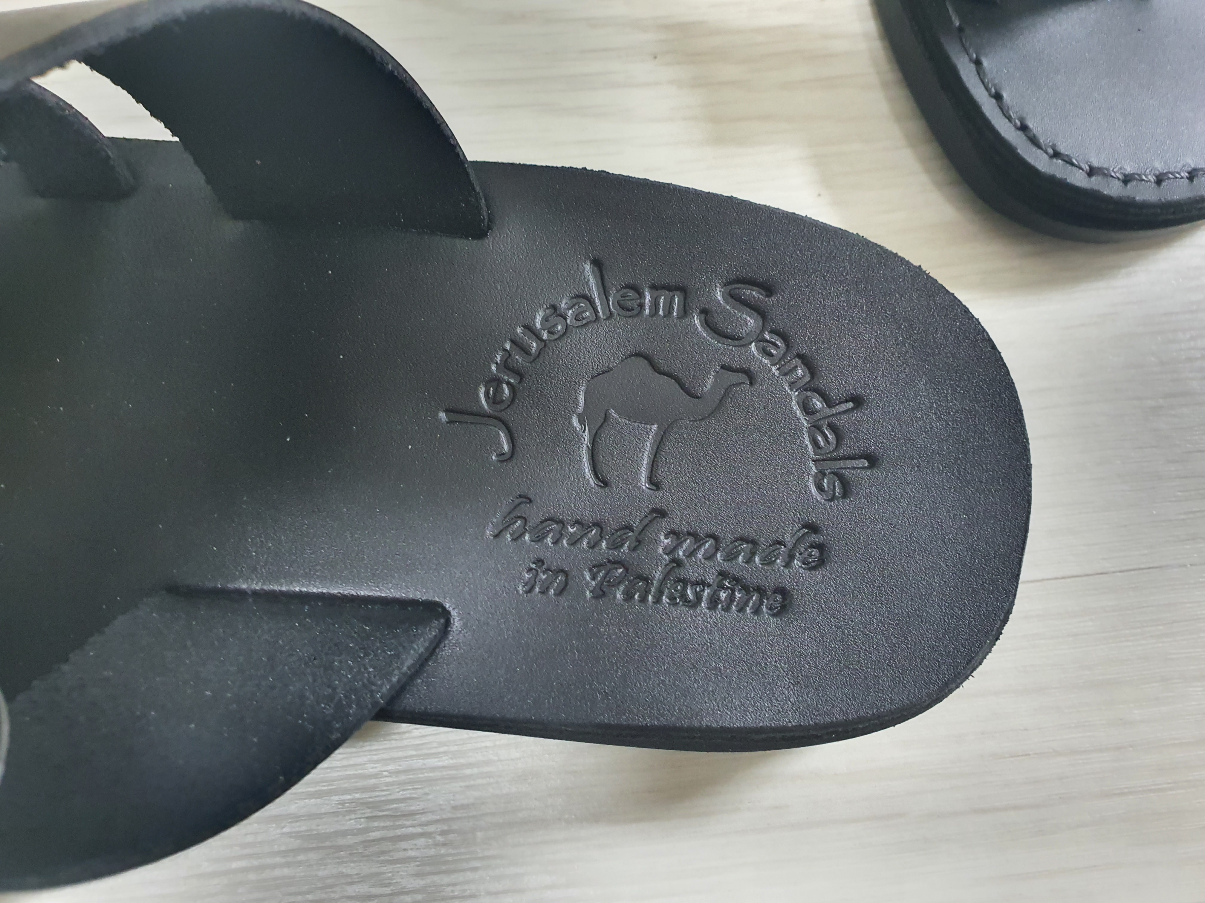 발 뒤꿈치 쪽에는 예루살렘 샌들 로고가 찍혀 있습니다.