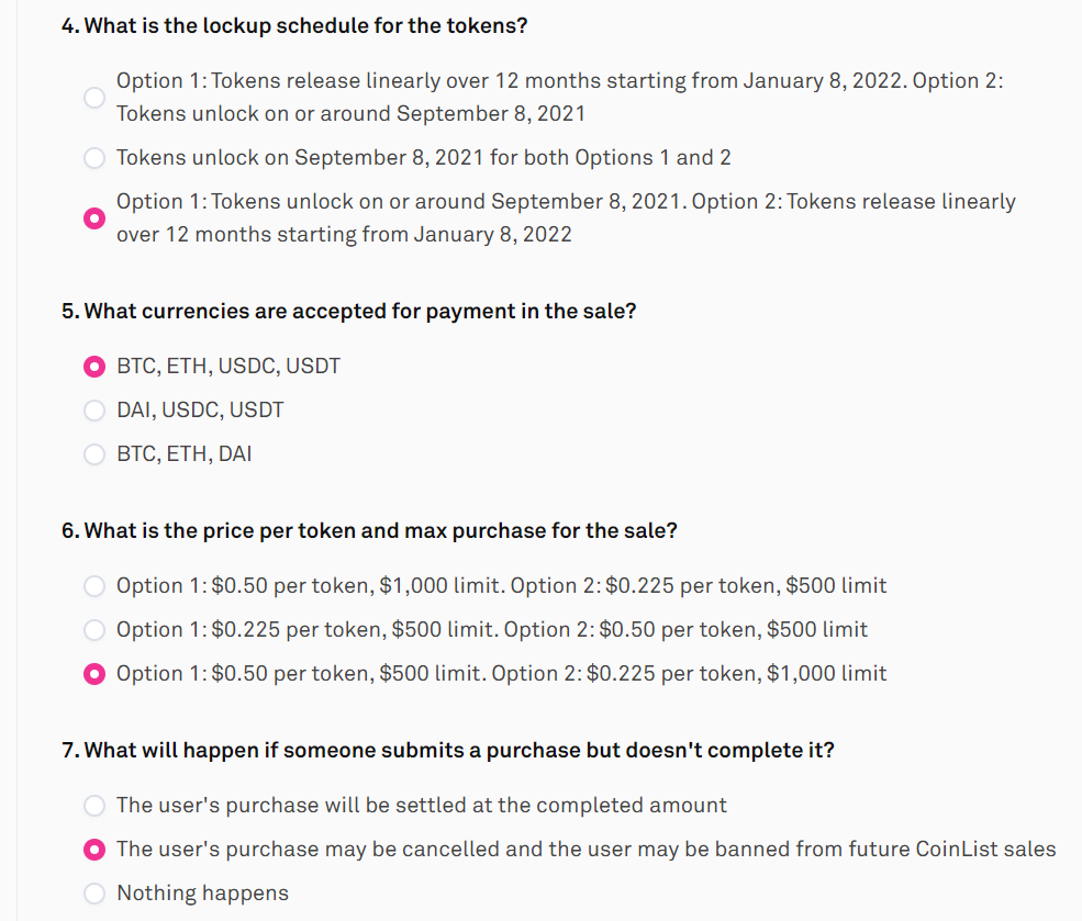 7. 요즘들어 코인 상장(ICO)에 등록할 시 퀴즈를 풀게끔 되어 있더라고요.