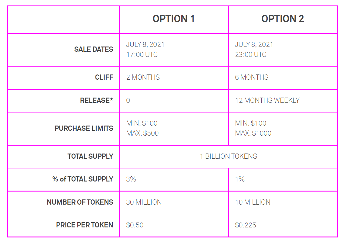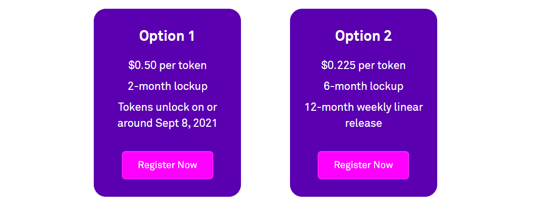 Option 1은 2개월 락업이 있는 대신 토큰당 $0.50 입니다.