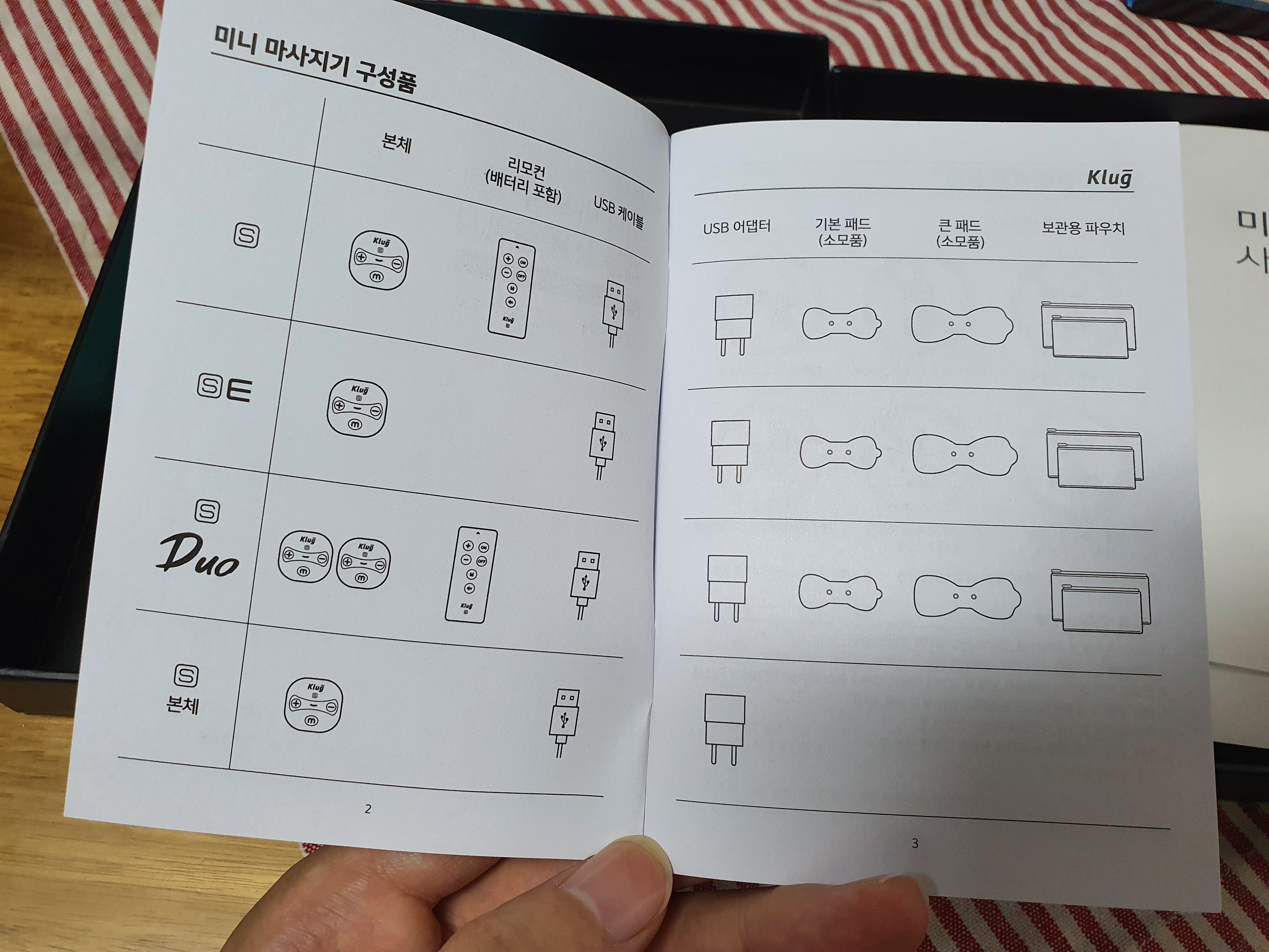 클럭 마사지기의 구성품은