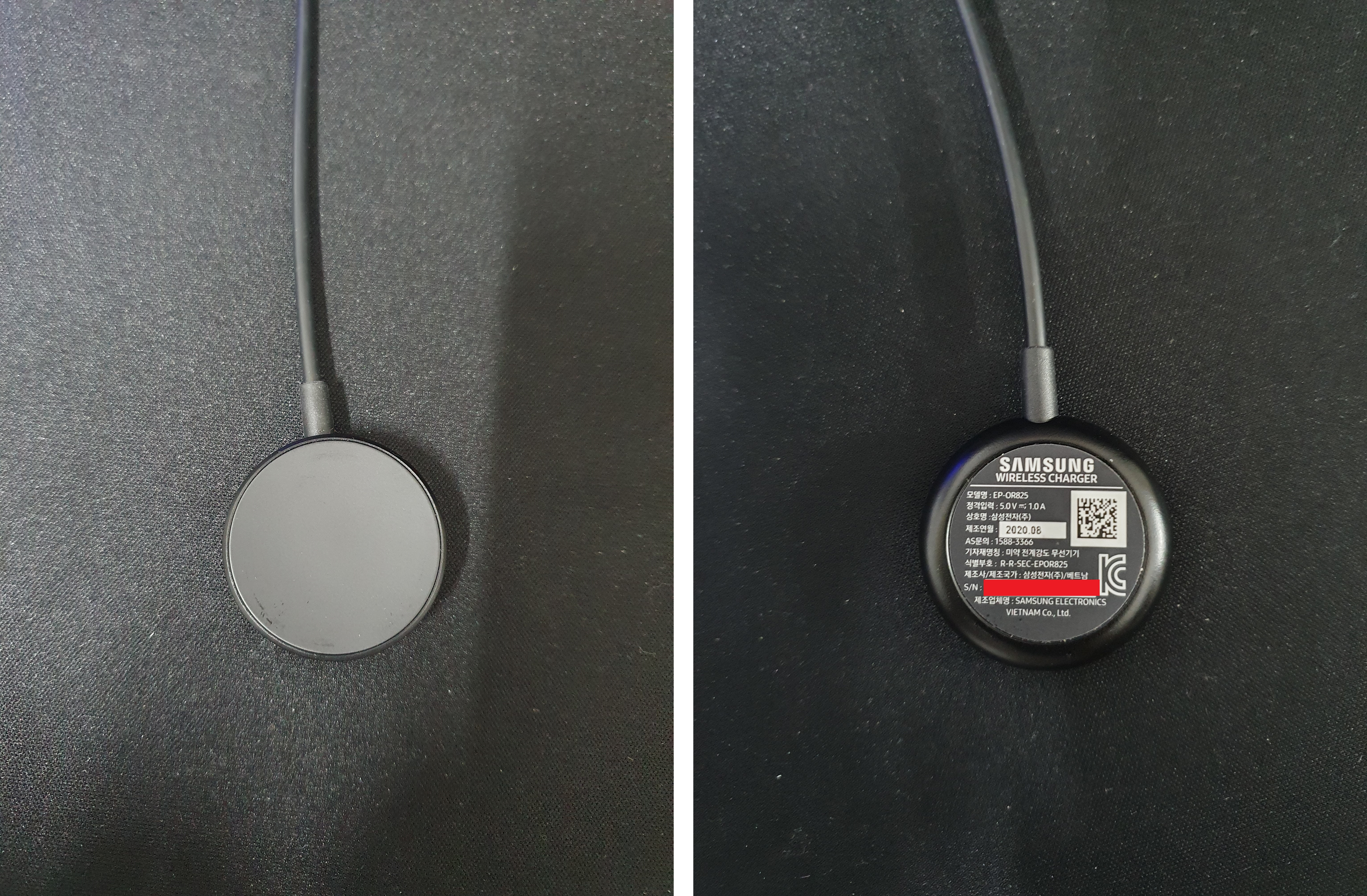갤럭시 워치3의 충전기는 위와 같이 생겼으며, 워치3를 갖다 놓으면 자력에 의해 착하고 달라붙게 됩니다.