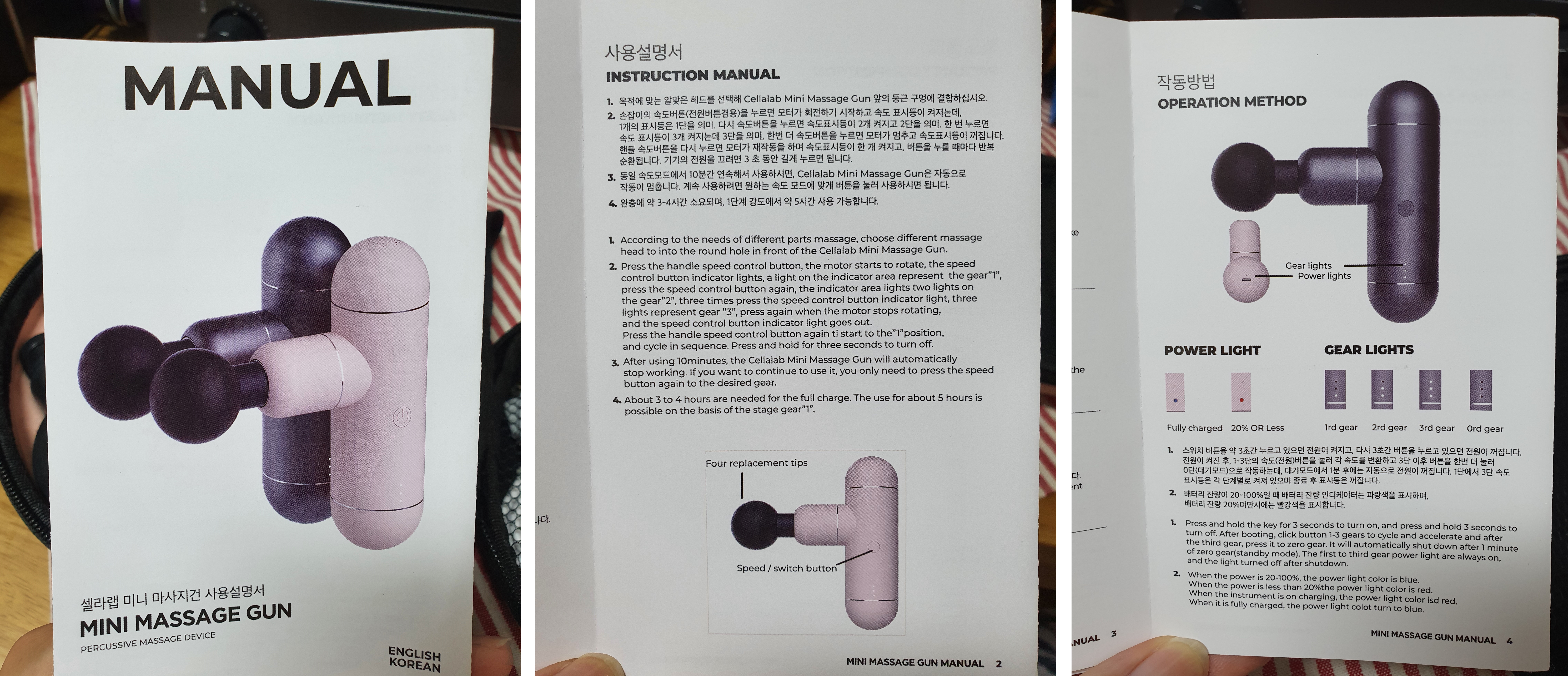 미니 마사지건 사용방법은 어렵지 않았습니다.