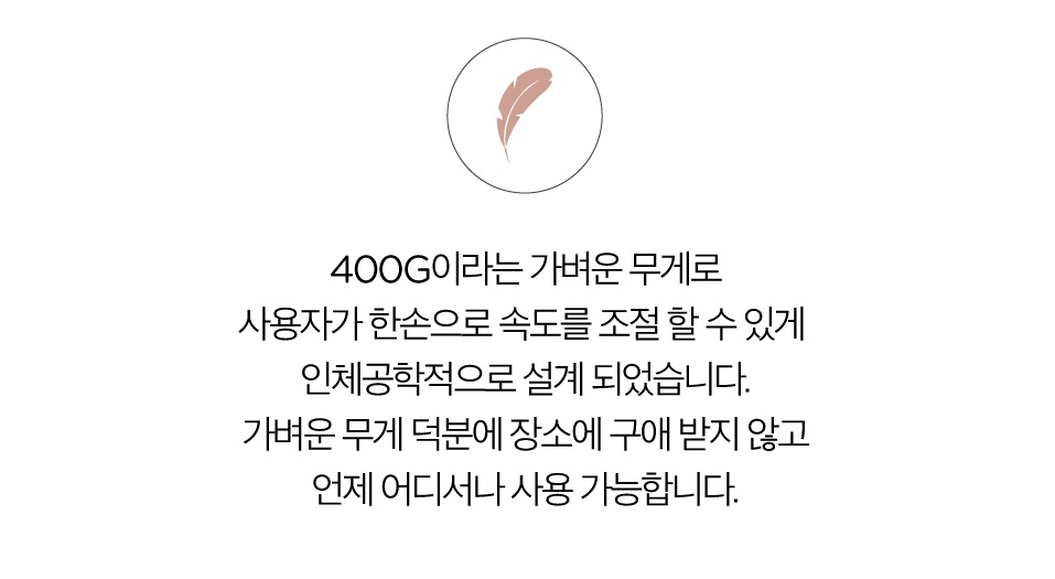 | 1. 400g이라는 가벼운 무게 2. 저소음 및 고출력 3. 네 가지 헤드 종류 |