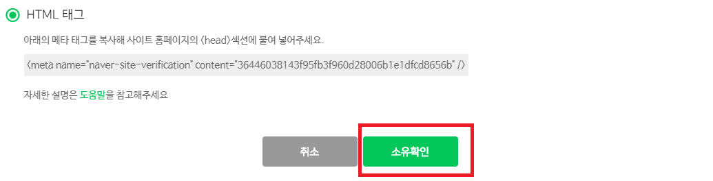그리고 그 아래에 박스 쳐저있는 메타 태그를 드래그하여 복사합니다.