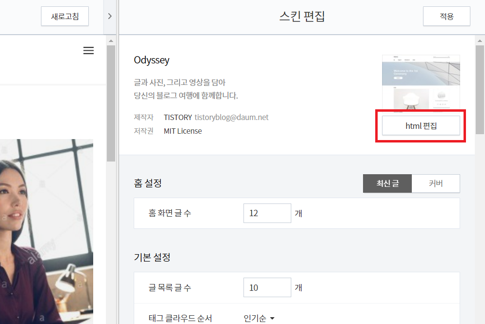 그다음 나오는 화면에서 우측에 "html 편집"을 클릭합니다.