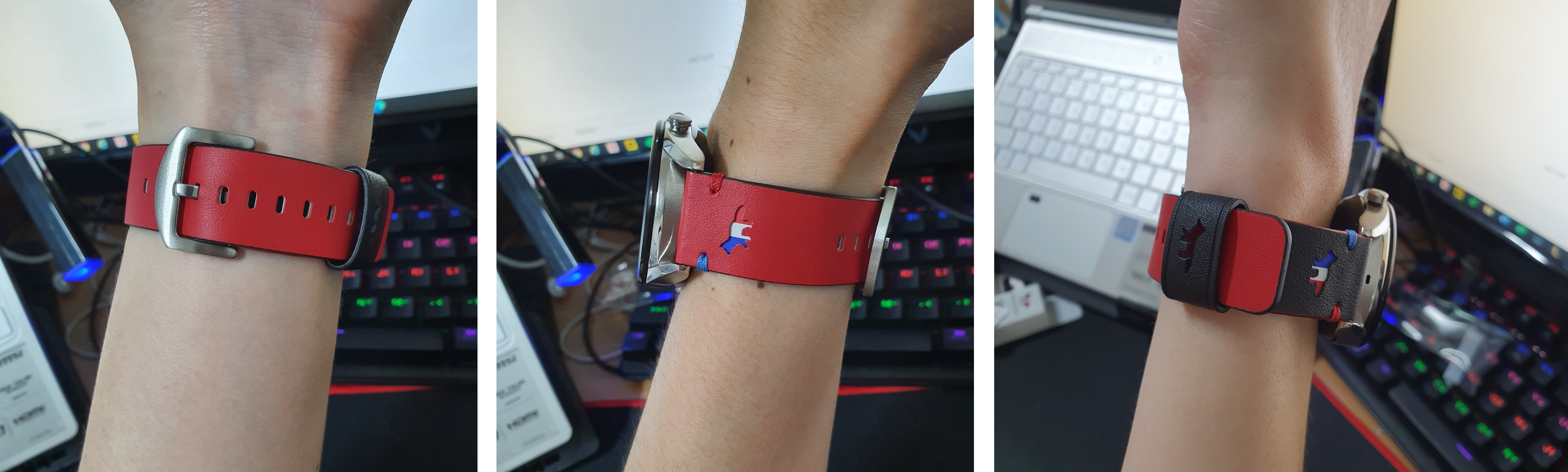 리뷰를 위해 5분도 안 되는 시간 동안 착용하고 나서의 스트랩 상태입니다.