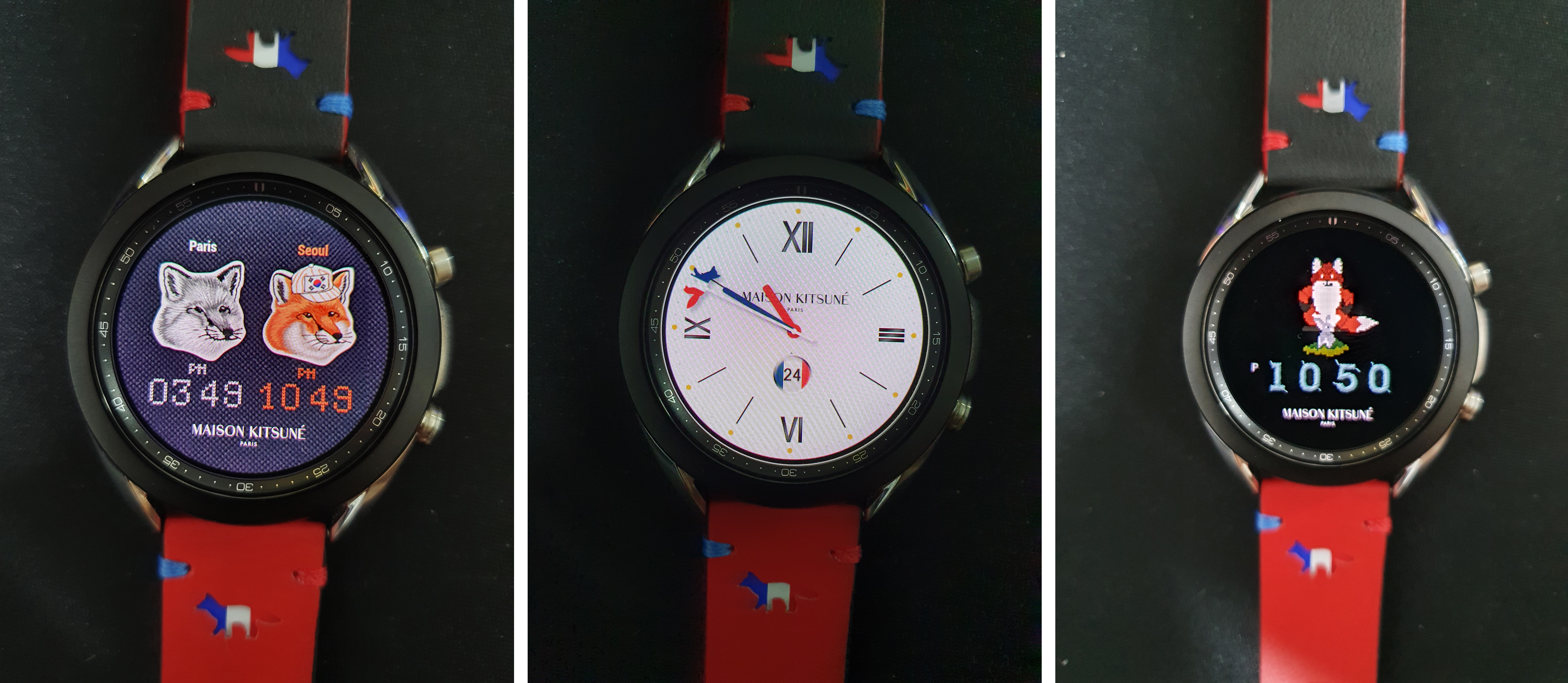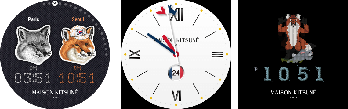 메종 키츠네 스트랩을 구매하면 아래와 같이 세 가지 워치 페이스를 제공해줍니다.